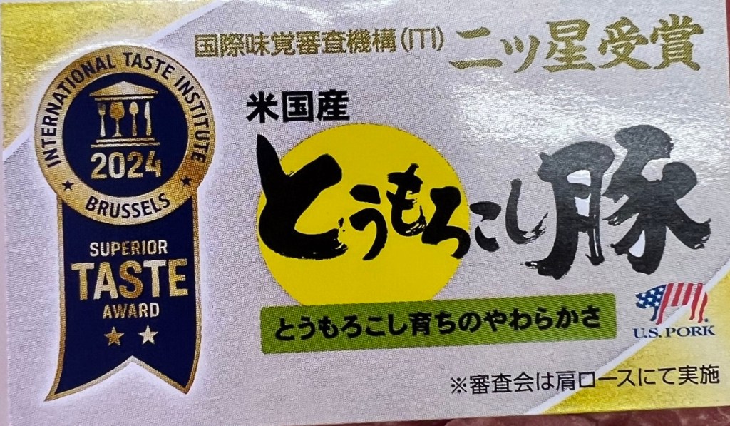 Now take a look at this American pork label—it highlights that the pork is corn-fed, which is a common marketing point in the U.S. At first glance, there doesn’t seem to be much that sets it apart from the others. But if you look closely, you’ll notice a small American flag icon on the bottom left of the package—an easy-to-miss detail that signals it’s imported. It’s subtle, but once you know what to look for, it becomes a lot easier to identify!
